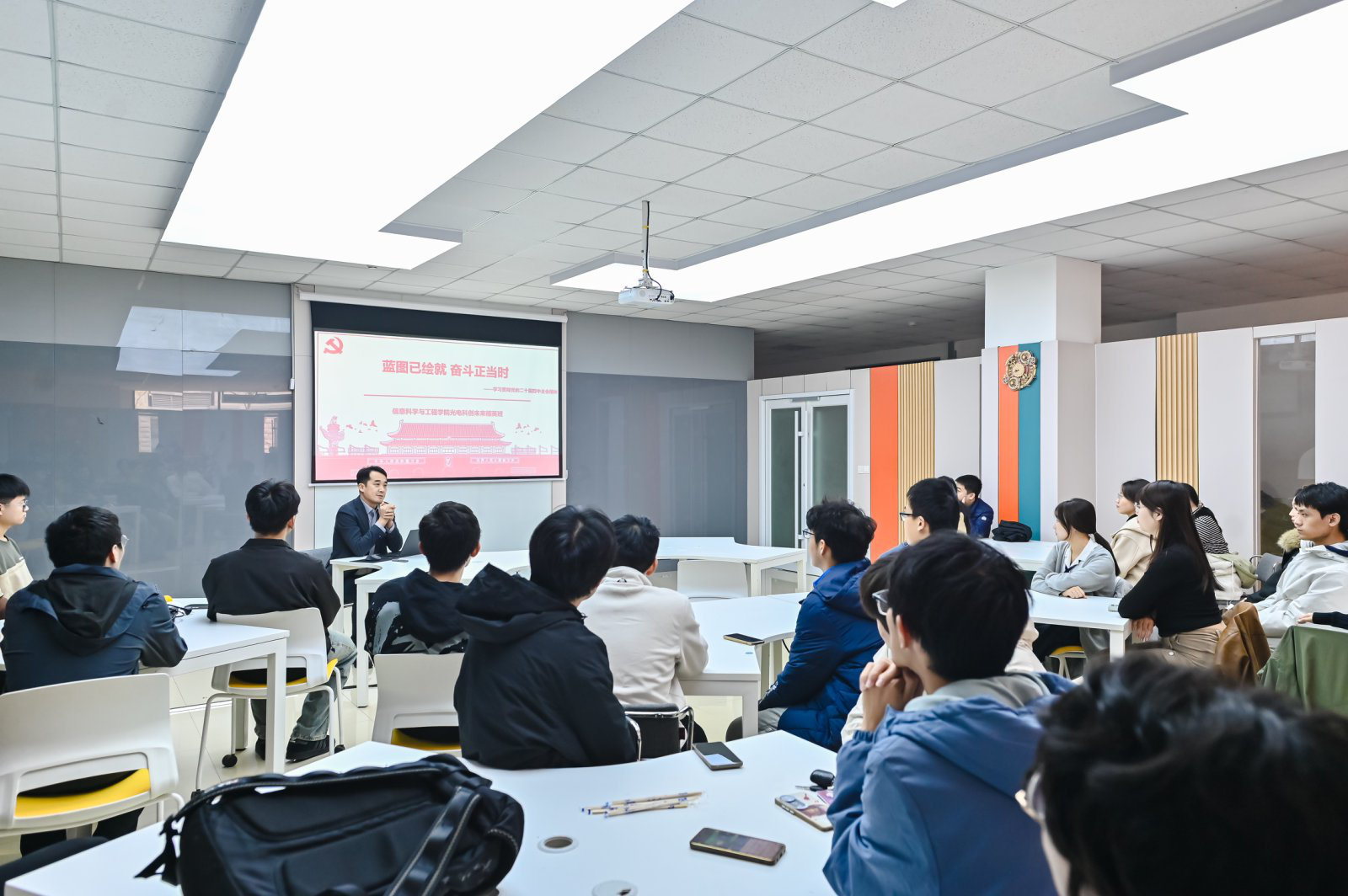 为深化思政教育创新,推动光电领域人才培养与国家战略紧密结合,刘兆军教授以“蓝图已绘就,奋斗正当时”为主题,系统解读党的二十届四中全会精神和《中共中央关于制定国民经济和社会发展第十五个五年规划的建议》,引导同学们勇担科技报国使命,将个人发展与国家战略结合起来,既要仰望星空,瞄准科技制高点;更要脚踏实地,在解决‘卡脖子’问题中书写青春答卷。