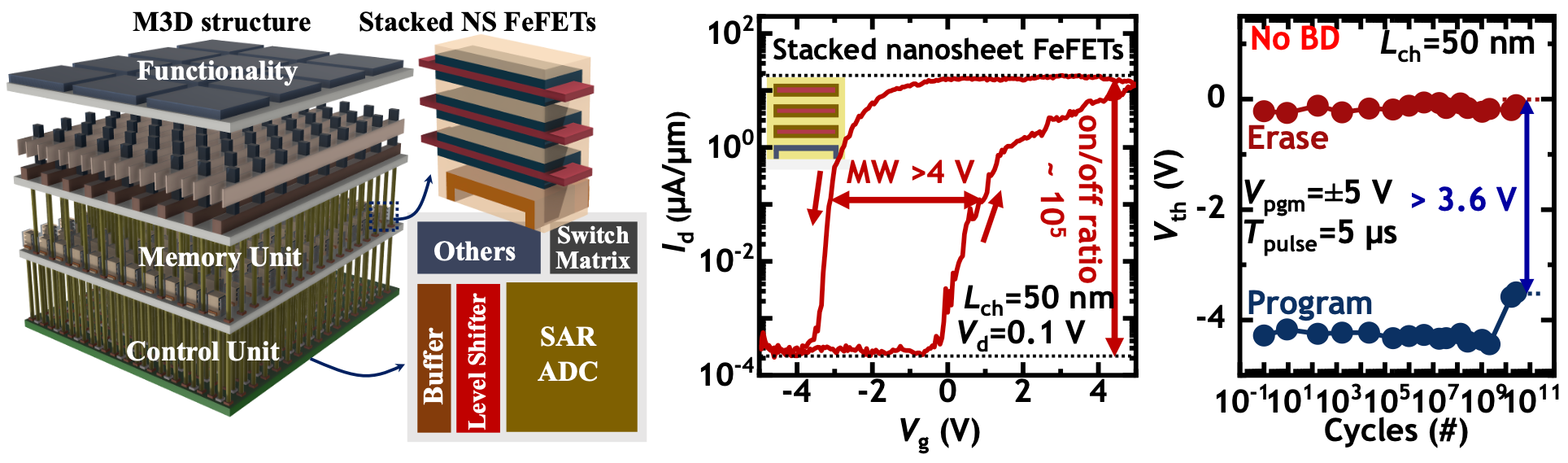 随着人工智能、大模型和高性能计算的迅猛发展,现代计算体系在算力、能效和集成度方面正面临前所未有的挑战。传统冯·诺依曼架构因处理器与存储器物理分离,长期受限于“存储墙”引发的带宽瓶颈和高能耗等问题,难以支撑人工智能应用对海量数据高效处理的需求。为突破这一结构性瓶颈,新型非易失性存储器和三维集成技术成为了后摩尔时代高能效计算的关键研究方向。上述四篇论文围绕新型铪基铁电存储器可靠性机理、低功耗逻辑器件设计等前沿领域展开研究,具体内容如下: