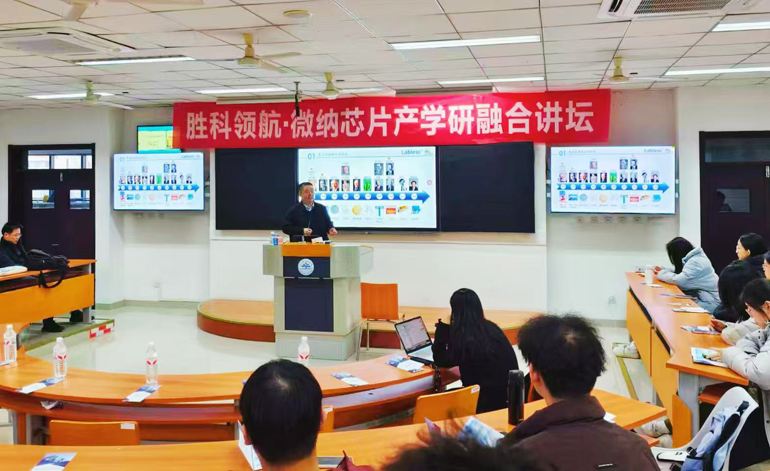 12月9日,信息学院“胜科领航・微纳芯片产学研融合讲坛”在山东大学青岛校区振声苑举行。胜科纳米(苏州)股份有限公司监事会主席、研发部负责人乔明胜作专题分享。讲坛由学院微纳光电子科学与技术实验班主办,学院陶继方教授主持,微纳班学生共同参与。