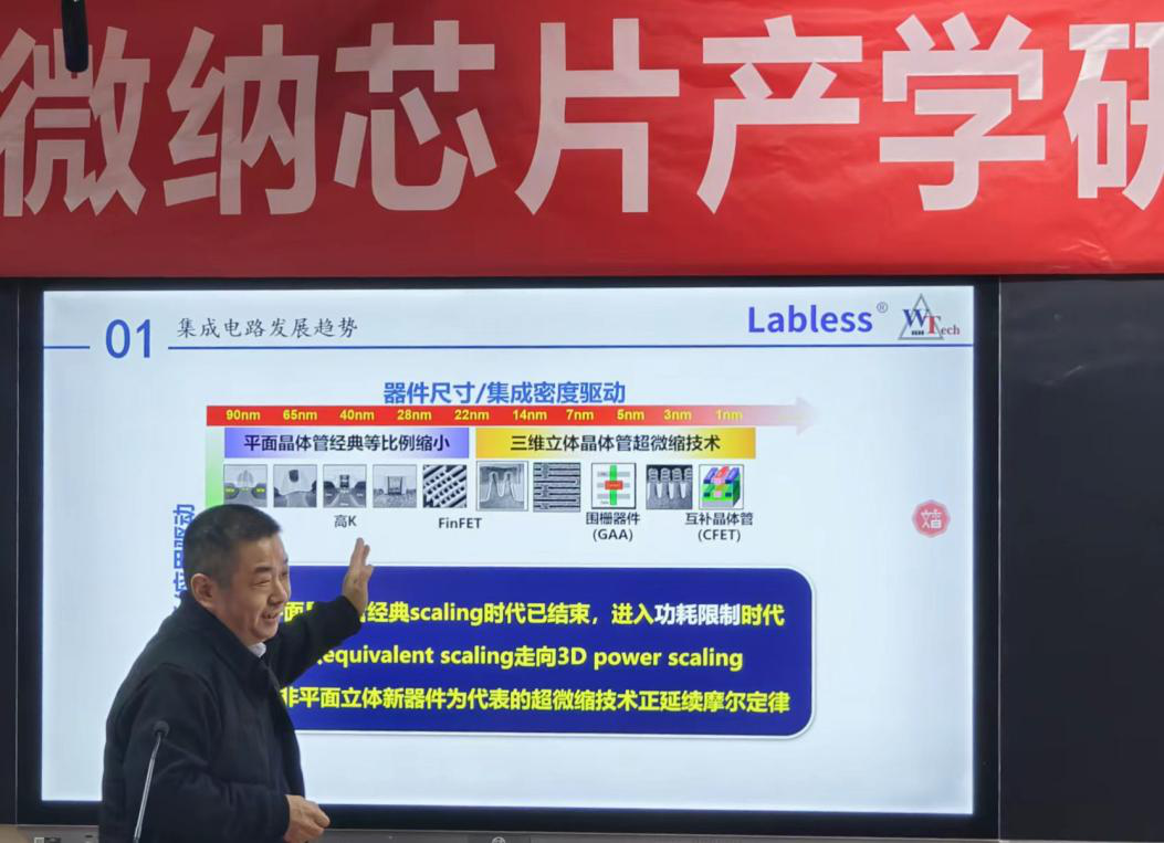 乔明胜以“集成电路前沿技术发展与失效分析关键技术”为题作分享。他介绍了分析测试技术的重要性,点明先进的分析测试技术是半导体研发与制造的“眼睛”与“裁判所”,其技术高度直接决定了芯片性能突破与良率提升的上限,是打破国外技术垄断、实现自主可控产业链不可或缺的关键环节。他深入剖析了全球产业技术演进趋势,并指出新兴的Labless专业化模式为我国广大创新主体聚焦核心技术研发、优化资源配置提供了战略性机遇。