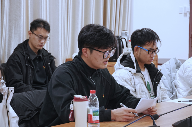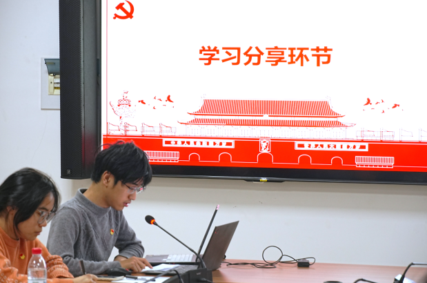 与会人员围绕学习内容开展学习交流,李波、祁荟璇、戴旭涛三位党员代表结合自身科研实际,分别从“奋斗、使命”“政策与产业同频”“科技自立自强与国防安全”等角度分享体会,体现了研究生党员将个人成长融入国家战略的自觉担当。