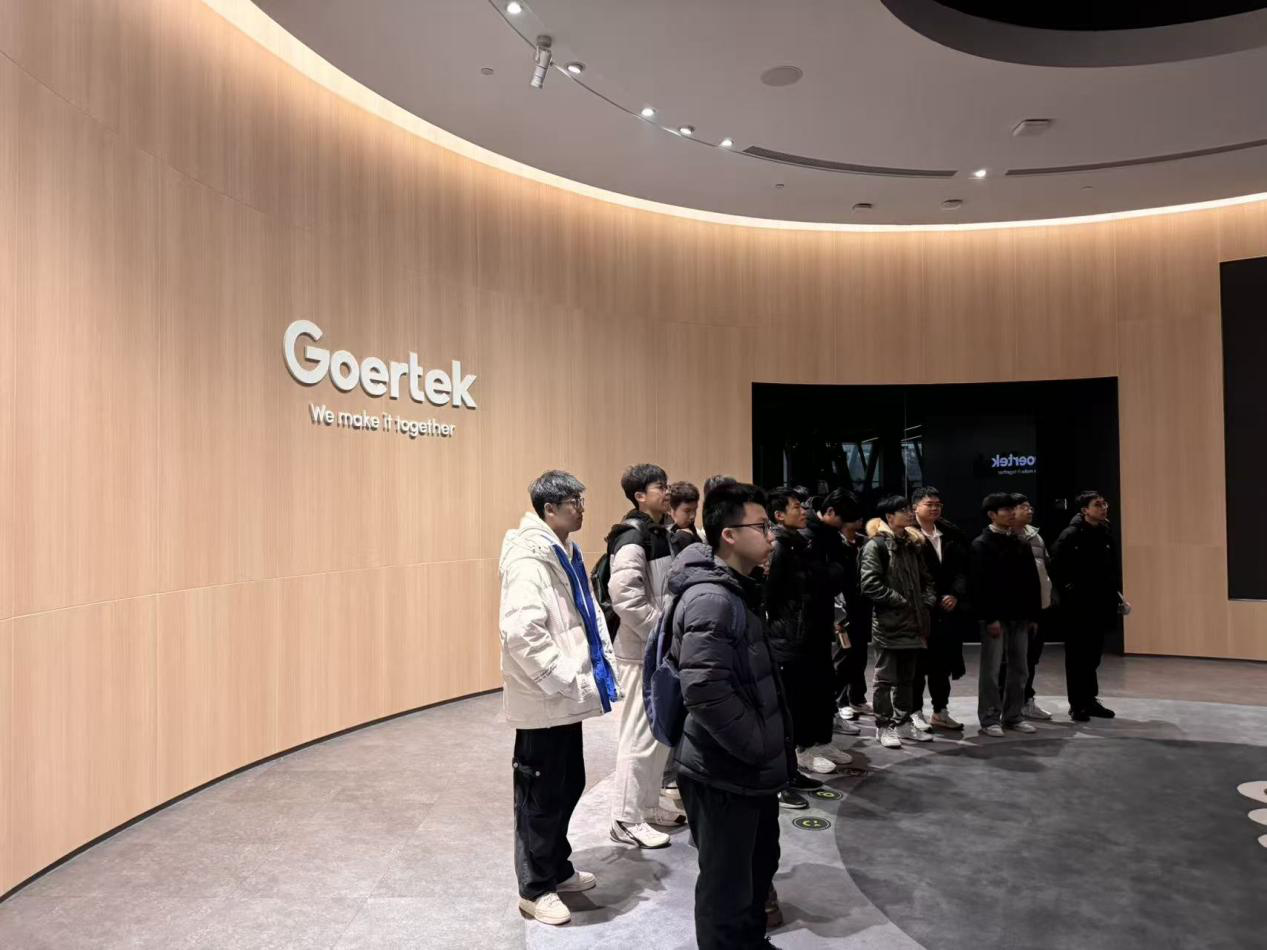 上午,师生团队抵达歌尔全球研发总部。在企业展厅中,耳机、手表、VR眼镜等智能设备现场演示,展现了歌尔在智能硬件、虚拟现实等领域的创新布局。在交流环节,企业技术负责人以声学传感器为例,解析了从原理创新到工艺落地的全链条研发流程,并强调多学科融合是突破技术瓶颈的关键。人力资源部门负责人介绍了歌尔校招情况与人才发展通道。